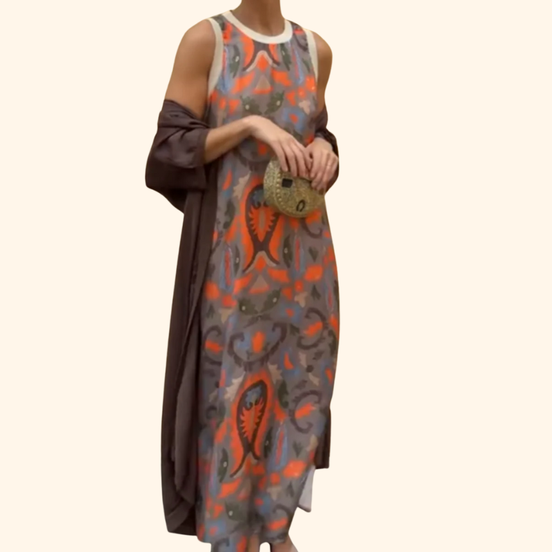 The sleeveless design of the accompanying items provides freedom of movement while adding a touch of modern flair.